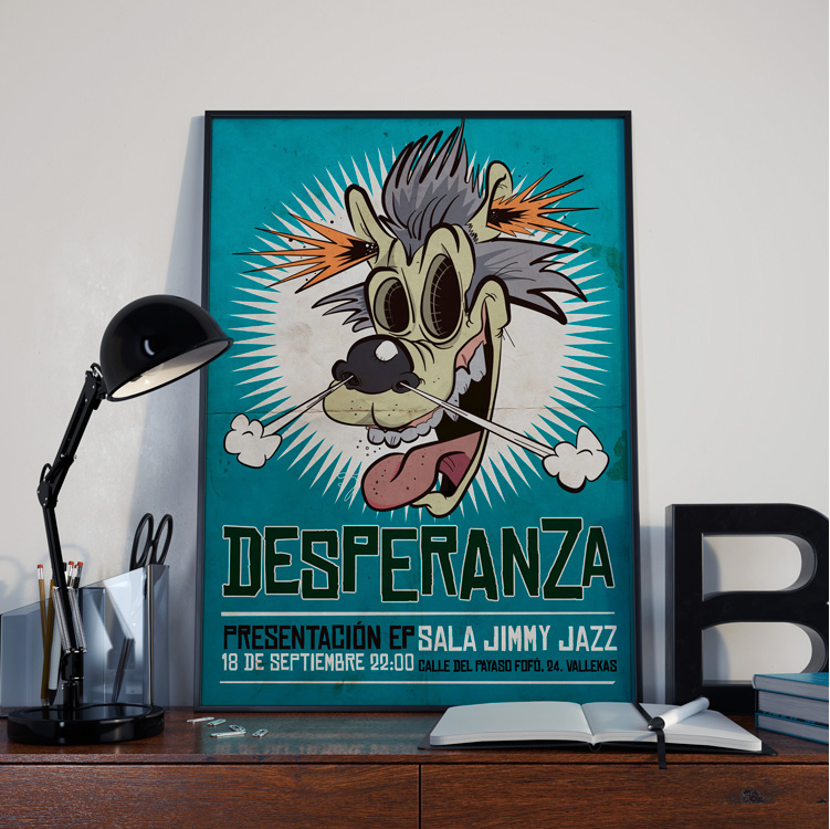Este proyecto lo destaco del resto, básicamente, porque es reciente y quizás por ello me siento orgulloso del resultado. El grupo Desperanza me pidió realizar un cartel para su concierto de presentación, y opté por realizar un póster de estilo underground noventero, puesto que su música tiene claras influencias del hardcore melódico de aquella época.